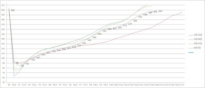 反曲點一樣, 約一分鐘左右 90 度, 跟 5/21 那次一樣, 所以就是讓它慢慢在5min 時到 120, 然後每分鐘昇10度的曲線, 順利的話, 第11分鐘會到 180, 就來關火了, 免得滑行時停不下來, 至少我確定到190關火一定來不及.